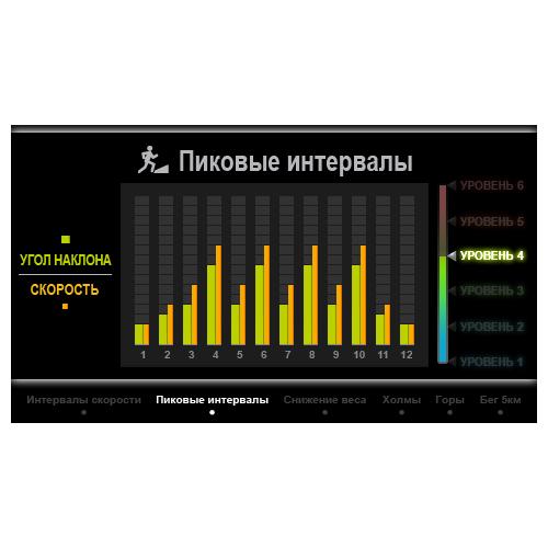 Консоль управления: разнообразные программы и полноформатное TFT изображение дисплея – ключевой мотивирующий фактор. Качественные иллюстрации, фотографии и русскоязычная навигация позволяют легко и с удовольствием выбрать необходимые функции меню, программы тренировок или создать собственный профиль тренировок. Встроенные целевые программы, каждая из которых разработана сертифицированным тренером, помогают Вам бежать быстрее, терять вес, поддерживать здоровье и оставаться в тонусе.