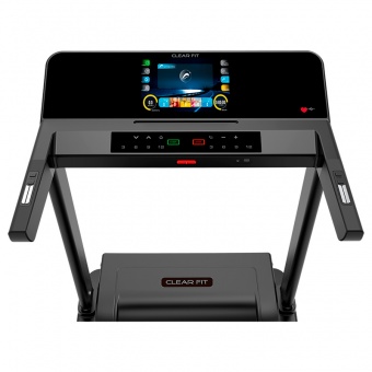 • Электрическая беговая дорожка Clear Fit LT 50 топовая модель серии LifeCardio – современная TFT-консоль и мощная конструкция для интенсивных, длительных или терапевтических тренировок. Создана специально для функционального домашнего использования, пользователь любого возраста и комплекции будет чувствовать себя комфортно, без стеснения движений, без ограничения скорости и выбора тренировок. Монументальная конструкция и надежный двигатель рассчитаны для пользователей до 160 кг., вес дорожки без упаковки 85 кг., это безопасность, устойчивость и качество. Тяжелый лаконичный каркас, комплектующие профессионального уровня, качественная электроника гарантируют высокую надежность, минимальный уровень шума и длительную эксплуатацию. Мощный двигатель 4 л.с., обеспечивает широкий диапазон скорости от 1 до 20 км/ч. Электрический наклон состоит из 18 уровней, обеспечивая максимальный выбор тренировок при любом уровне подготовки. Просторное полотно отличается большой длиной по сравнению с аналогами: 510 х 1500 мм, это полную свобода и безопасность на любой скорости. Коммерческая дека 20 мм и роллеры вращения полотна большого диаметра 50/46 мм для надежной, длительной и интенсивной эксплуатации.