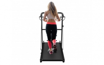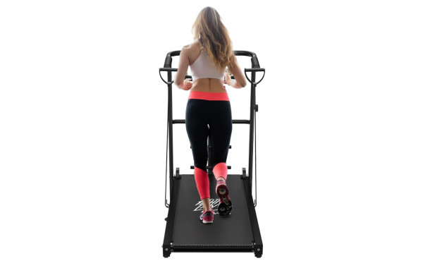 Механическая система регулировки угла наклона на 2 уровня дает  возможность изменять интенсивность тренировки, что позволяет разнообразить тренировочный процесс и задействовать различные группы мышц. Находясь под углом, дорожка разгоняется под собственным весом пользователя. Пользователь может самостоятельно регулировать скорость тренировок, начиная с медленного шага и переходя к более интенсивным упражнениям.