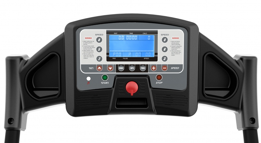 Показания консоли  время, скорость, дистанция, пульс, калории, программы