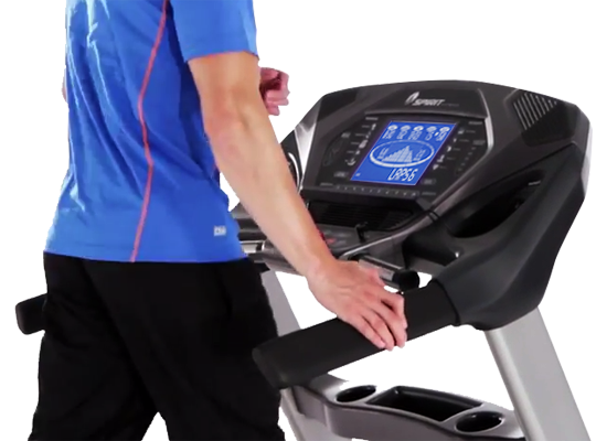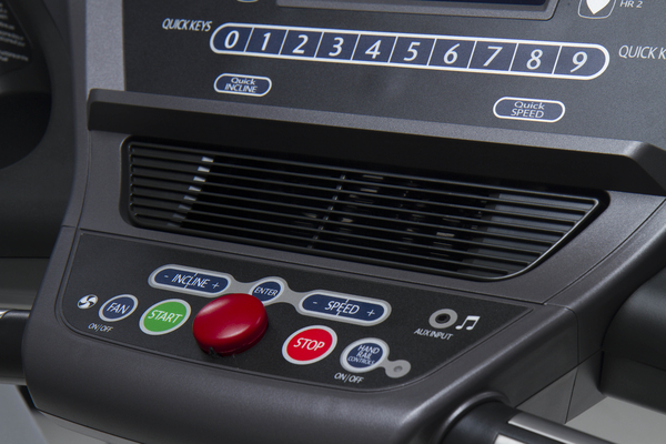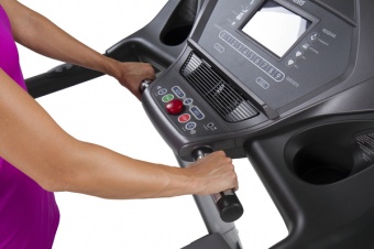 • Дополнительное управление. На поручнях тренажера имеются дополнительные кнопки управления для быстрой корректировки скорости и угла наклона беговой поверхности.