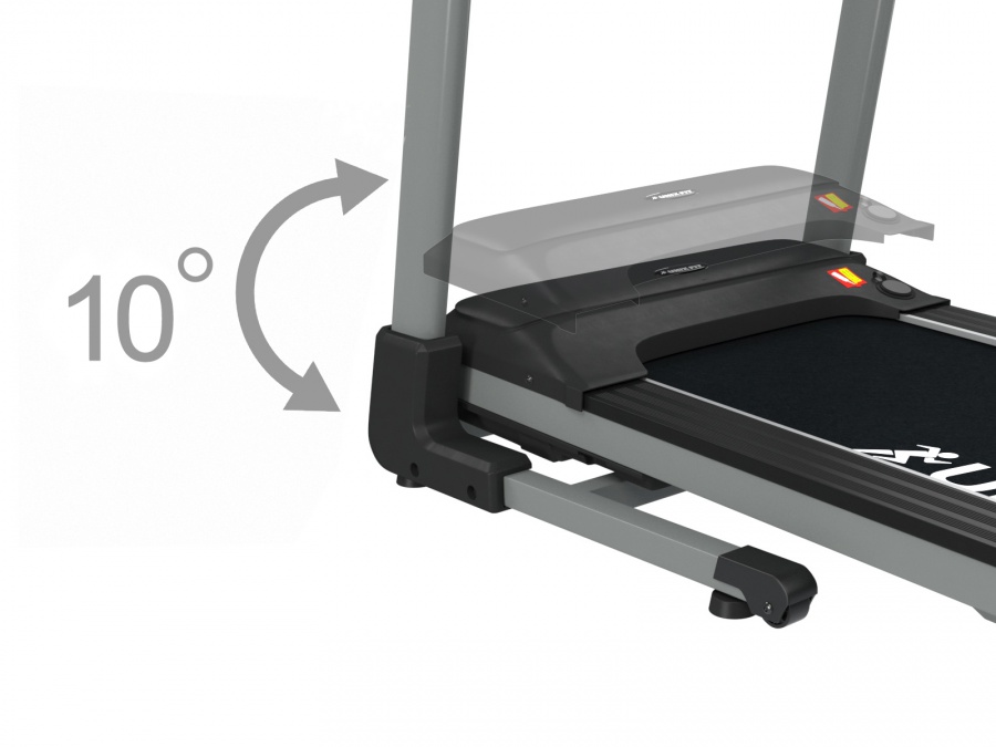 Основными особенностями этой модели является возможность изменения угла наклона беговой поверхности в трех положениях от 0 до 10 градусов, двигатель мощностью 1.75 л.с., позволяющий развить скорость до 14,5 км/ч, беговое полотно размером 42,5Х125 см., а так же усиленная конструкция рамы, благодаря чему максимальный вес пользователя составляет 120 кг. На данную модель установлена инновационная система автоматической смазки бегового полотна, а нагрудный кардиодатчик постоянно передает на дисплей информацию о частоте сердцебиения. Теперь нет необходимости держаться за поручни сковывая движения, чтобы узнать свой пульс.