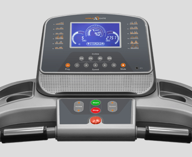 В рамках своих основных характеристик дорожка Applegate T40 ADC занимает премиальную нишу и ориентирована на требовательных пользователей. Движение полотна на скорости от 1 до 16 км/ч обеспечивает надежный двигатель постоянного тока мощностью 2,5 л.с. производства Schneider Electric. Параметры мотора позволяют заниматься на тренажере пользователям весом вплоть до 140 кг. Размер бегового полотна составляет 130 см в длину и 42 см в ширину – это более чем комфортные размеры как для ходьбы, так и бега. Угол наклона регулируется электрическим путем в диапазоне от 0 до 15%. Верхний слой полотна выполнен из специального полимера, который не только гарантирует длительную эксплуатацию, но и за счет ромбовидной формы поверхности обеспечивает надежное сцепление обуви и полотна. В основе конструкции двойной деки лежит древесно-волокнистая композитная плита средней плотности. Ее толщина составляет 18 мм, она обработана парафином для мягкого и долговечного скольжения.