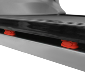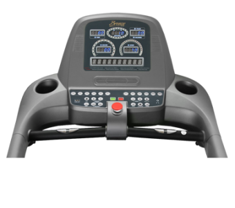 Bronze Gym T800 LC - полупрофессиональная беговая дорожка, рассчитанная на клубы со средней проходимостью. В отличие от конкурирующих моделей, которые зачастую представляют собой оборудование для дома с хорошими характеристиками, искусственно перенесенное в полупрофессиональный сегмент, T800 LC изначально конструировалась для использования в залах. Об этом говорит, в первую очередь, двигатель переменного тока (3.0 л.с. производства японской Fuji Electric Co.), рассчитанный на эксплуатацию до 10 часов в день. Усиленная механическая часть представлена рамой с высокопрочным каркасом, построенном на мощном профиле 80 х 40 мм с использованием стоек 120 х 40 мм. Складная конструкция, которая казалось бы относит дорожку к классу домашних, на самом деле является более поздней модификацией и добавлена для расширения диапазона потенциальных покупателей. Благодаря удачному инженерному решению, эта функция не сделала дорожку менее надежной или устойчивой. По своим остальным характеристикам T800 LC полностью соответствует заявленному уровню - максимальная скорость 18 км/ч, угол наклона от 0 до 20%, беговое полотно коммерческого уровня 2,2 мм размером 145 х 52 мм, а также амортизационный блок, настроенный на среднюю жесткость (связка из двойной деки, 2-ух передних полноразмерных эластомеров и 4-ех амортизационных подушек по периметру беговой зоны). Большой 7-ми дюймовый голубой LCD дисплей выводит на экран все основные параметры, включая профиль тренировки. В число программ входит 5 предустановленных режимов, а также 3 пользовательских профиля и 1 пульсозависимая программа (телеметрический передатчик входит в комплект). За удобство складывания и раскладывания отвечает двухфазная гидравлика. Мультимедиа представлена встроенными динамиками и входом для CD/MP3-плеера. В консоль встроен однофазный вентилятор.