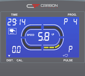 Carbon Fitness T556 - один из самых оптимальных вариантов электрической беговой дорожки, сочетающий в себе низкую стоимость и характеристики, которые скорее можно отнести к разряду продвинутых. Сюда относятся надежный двигатель американской компании Leeson мощностью 1,75 л.с., рассчитанный на максимальный вес пользователя 120 кг., достаточное для комфортного бега полотно размером 120 х 40 см. и скоростью до 12 км/ч и электрический наклон от 0 до 12%. Амортизация удовлетворит большинство пользователей и состоит из 4-ех плоских эластомеров и 2-ух поролоновых подушек - по жесткости это скорее средний вариант, хотя наличие 2-ух поролоновых подушек смягчает активную центральную зону, значительно снижая нагрузку на стопы.
