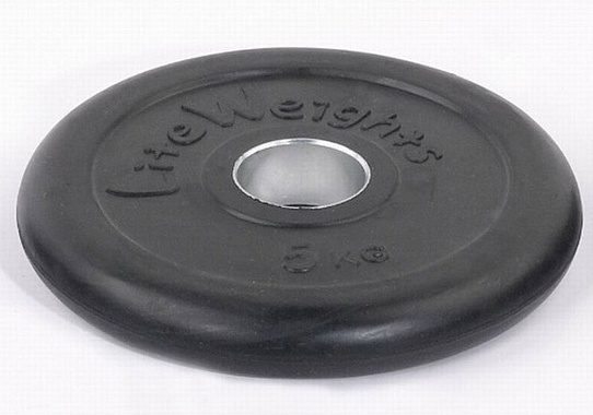 Диск обрезиненный 5 кг Lite Weights d-51mm, с металлической втулкой RJ1050 черный