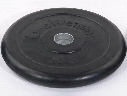 Диск обрезиненный 20 кг Lite Weights d-51mm, с металлической втулкой RJ1050 черный