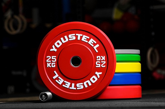 Диск 25кг, каучуковый, тренировочный, красный YouSteel