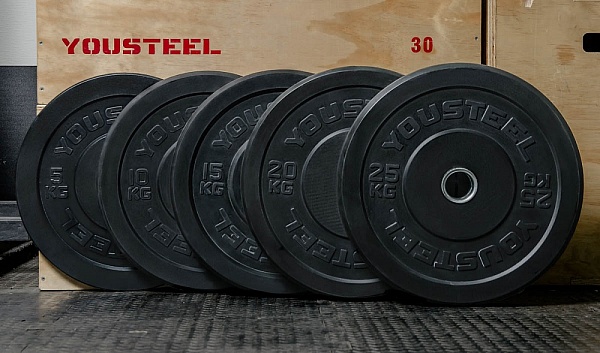 Диск 5кг, каучуковый, тренировочный, черный YouSteel