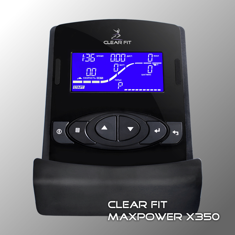 Эллиптический тренажер Clear Fit Х350 серии MaxPower отличается правильной биомеханикой и универсальной эргономикой конструкции. Длина шага 51 см обеспечивает эффективность тренировки и задействует в движении максимальную группу мышц. Конструкция спроектирована для пользователей любого роста при комплекции до 140 кг, это комфорт, надежность и безопасность. Тяжелый сбалансированный маховик и качественные подшипниковые соединения всех подвижных сочленений обеспечивают плавный и мягкий ход. Правильная траектория хода педалей и минимальный Q-фактор 45 мм гарантируют естественную физиологию движения для максимально эффективной тренировки. Идеальный вариант как для снижения веса и тренировок высокой интенсивности, так и для восстановления и тренировки кардиосистемы. Благодаря продуманной конструкции педально-рычажного механизма, на данной модели нет ограничения по росту пользователя. Трек оснащен качественными прорезиненными роликами на алюминиевых экструдированных направляющих, которые дают надежную поддержку для стабильного хода. Педали расположены под наклоном 2⁰, для наиболее удобной постановки ступни, обеспечивая правильное положение пользователя. Каждый элемент в отдельности и конструкция в целом обеспечивают максимально щадящую нагрузку для суставов и эффективную тренировку для основной группы мышц. Русифицированный компьютер с контрастным LCD дисплеем 5” позволяет легко выбрать необходимые параметры тренировки, подключать беспроводной датчик пульса, отображает скорость, время, калории, количество шагов в минуту, работу в Вт, диаграмму тренировки и др. Программное обеспечение включает 40 тренировок: 12 встроенных программ, спортивные тесты и анализаторы состава тела, 5 кардиопрограмм, 4 индивидуальных профиля и т.д. Корпус компьютера оборудован системой регулировки угла наклона монитора и удобной подставкой под гаджеты и книги. Разноплановые программы компьютера управления повышают эффективность тренировок и делают их интересными и нескучными. Программы контроля пульса и Ватт-контроля помогают фиксировать нагрузку в зависимости от физического состояния организма и пожеланий к общей эффективности тренировки. Доступна интеграция полного графического изображения c дополнительными функциями на устройства iOS и Android, посредством Bluetooth соединения. Cовместимость с устройствами на платформе iOS и Android повышают мотивацию и эффективность спортивных тренировок, упрощают настройки пользовательских програм и делает управление тренировкой более простым и приятным. Bluetooth-модуль не входит в комплект поставки, можно приобрести отдельно. Контроль и измерение пульса возможны с помощью встроенных датчиков пульса в поручни тренажера и/или беспроводного датчика пульса. Телеметрический нагрудный кардиопояс не входит в комплект поставки. Выбирая эллиптический тренажер CF MaxPower Х350 Вы приобретаете качество, надежность и комфорт, это эффективные и безопасные тренировки на профессиональном уровне у Вас дома.