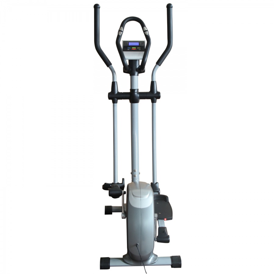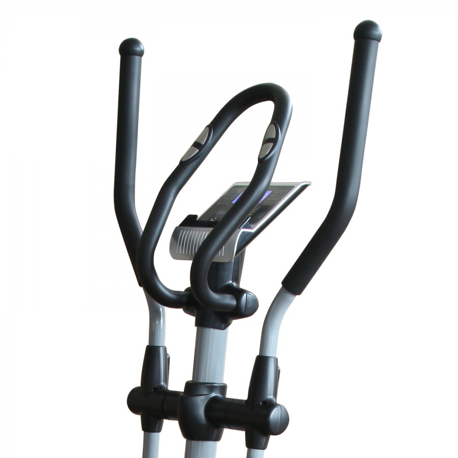 Среднегабаритный эллиптический тренажер для домашнего использования с бесшумной магнитной системой нагружения с электроприводом. Оснащен датчиками измерения сердечного ритма, расположенными на рукоятках. Тренажер также имеет держатель для планшета и транспортировочные ролики для легкого перемещения после тренировки. Запатентованная система двустороннего вращение маховика придает дополнительную плавность и более правильный ход педалей при занятии.