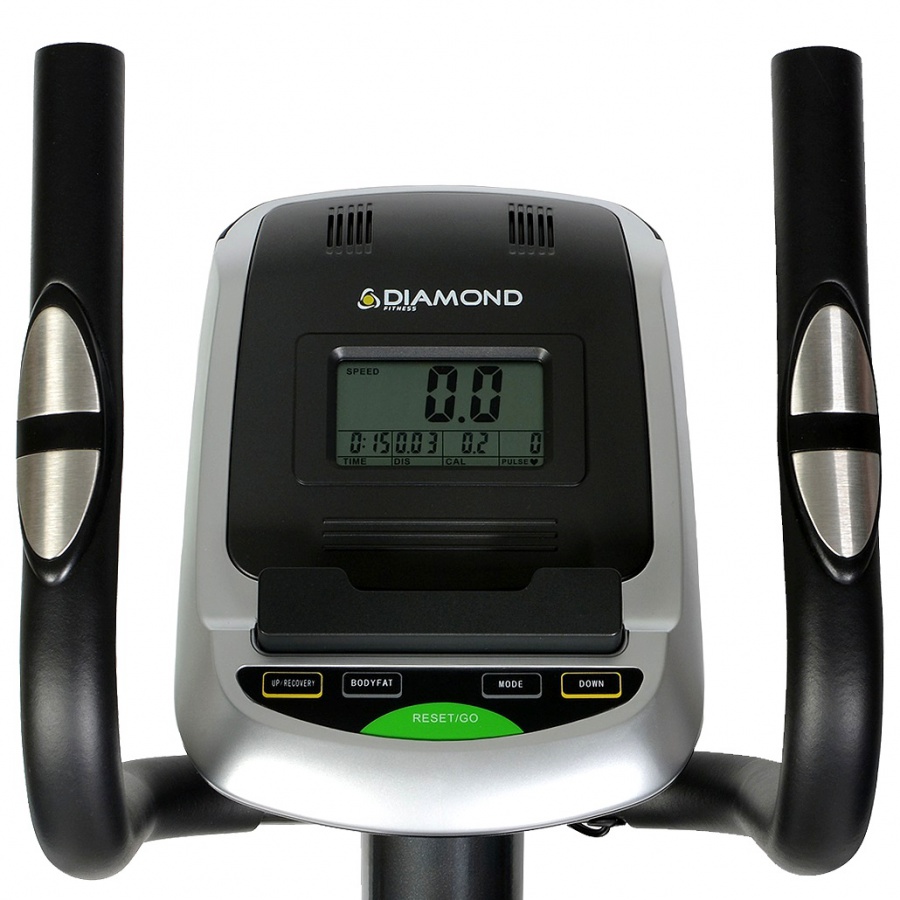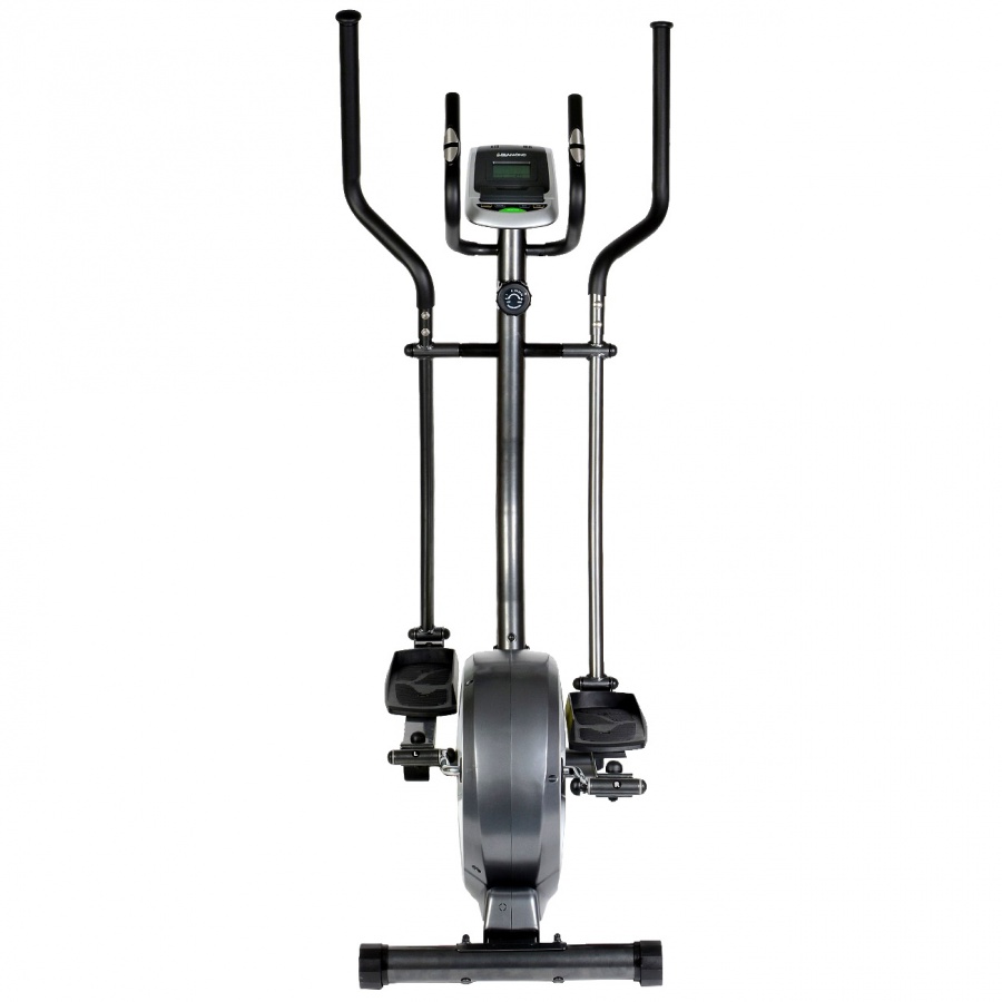 Тренажер Diamond Fitness Smart Cross обладает внушительным сбалансированным маховиком 8 кг, с инерционным весом 17,6 кг. Длина шага имеет достаточную длину для комфортных и эффективных тренировок и составляет 38 см. Тренажер имеет 8 уровней регулировки нагрузки, антискользящие трех позиционные педали, LCD дисплей с сенсорными клавишами, на экране высвечиваются все основные параметры тренировки: скорость, время, пройденная дистанция, потраченные калории и пульс. Максимальный вес пользователя составляет 130 кг. Это лучший магнитный эллиптический тренажер по соотношению цена-качество, где качество опережает цену.