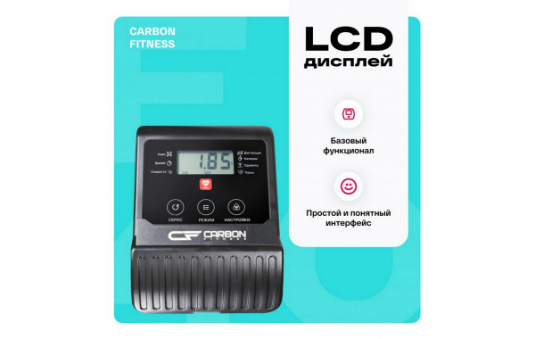 CARBON FITNESS E40 оснащен LCD консолью, на которой отображаются все важные параметры: время, скорость, дистанция, калории и пульс. Тренажер предлагает ручной режим тренировок, что позволяет легко адаптировать занятия под ваши индивидуальные цели. Также предусмотрена подставка для планшета или смартфона, что позволяет оставаться на связи во время тренировки.