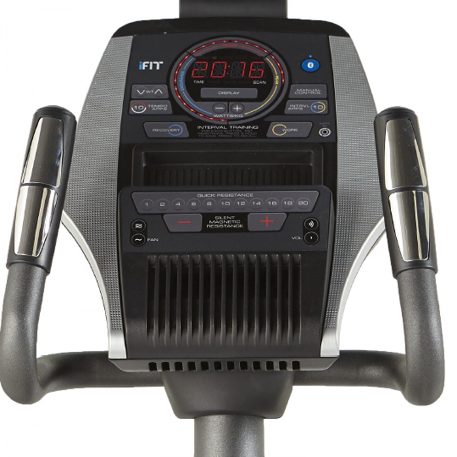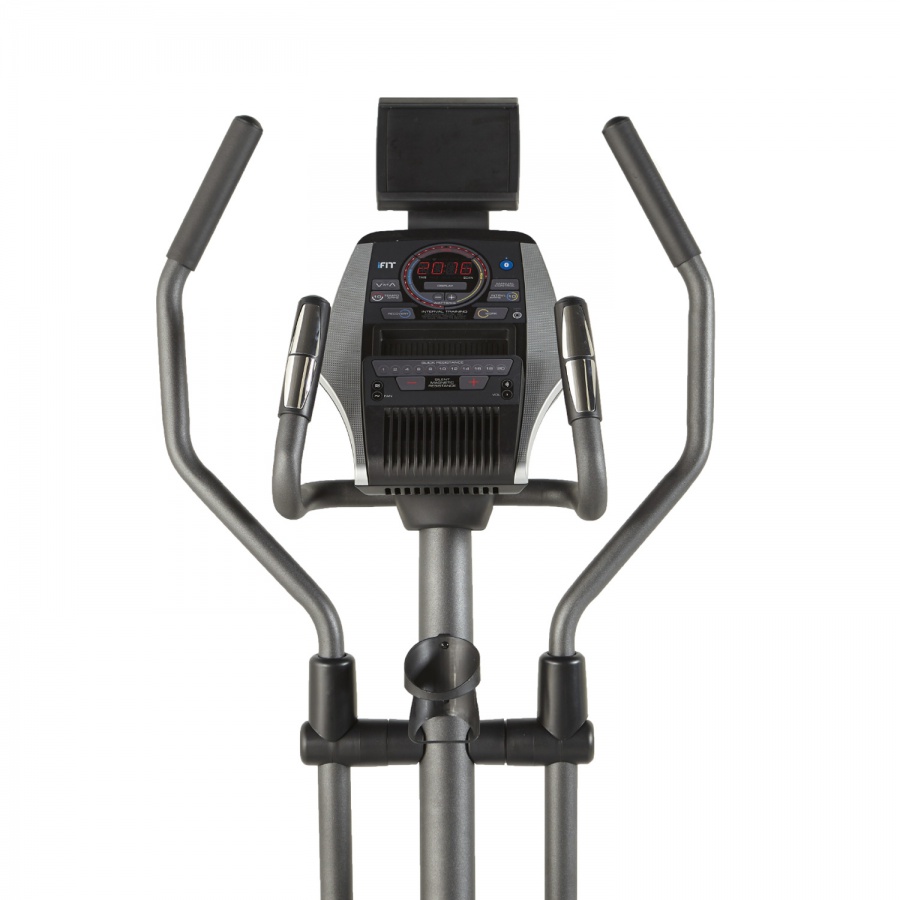 Компактный эллиптический тренажер для домашнего использования c шагом 36 см. 20 уровней электромагнитного сопротивления вместе с 20 встроенными пользовательскими программами дают возможность подбирать индивидуальные нагрузки. Оснащен датчиками измерения сердечного ритма EKG™ Grip Pulse, расположенными на рукоятках. Консоль с LED–дисплеем и понятным круговым интерфейсом поддерживает соединения Bluetooth® для нагрудного датчика пульса и смарт-устройств через приложение iFit®. Просто скачайте бесплатное приложение iFit® Coach Redy™ из App Store™ или Google Play™ на ваш телефон или планшет с iOS® или Andriod™, и следуйте инструкциям по созданию аккаунта iFit и установке настроек. Тренажер также имеет держатели для планшета и бутылки, разъем для подключения iPod® и транспортировочные ролики для легкого перемещения после тренировки.