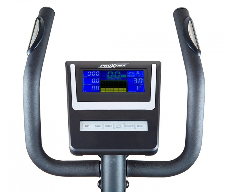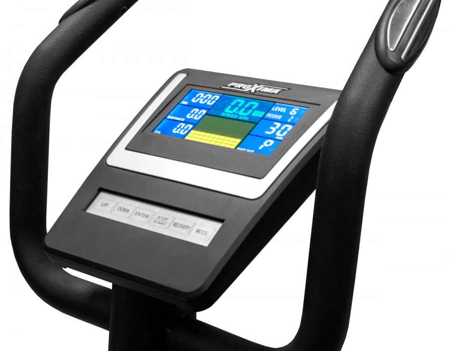За счет специальной технологии под названием «Flow Step» пользователь может насладиться плавностью хода без резких рывков и шума. А благодаря особым конструкционным особенностям данного тренажера все нагрузки на позвоночник, колени, суставы и голеностоп будут минимальными. Если вы решили купить эллиптический тренажер Proxima Panda, то помимо всего прочего ещё сможете оценить и его полезную функцию кардиотренировки, осуществляемую за счет наличия нагрудного кардиодатчика. Зоны пульса и всевозможные профиля нагрузки вы можете посмотреть на экране компьютера спортивного агрегата. Там же для вас имеются и 16-ть встроенных программ. Высокий же эксплуатационный срок обеспечивается за счет применения специальных высокопрочных материалов в процессе создания конструкции спортивного агрегата, таких как: легированная сталь и инженерно-технологического пластика.Чтобы проконтролировать время тренировки, дистанцию, пульс, калории, которые были затрачены в тренажере, имеется специальный пятидюймовый программируемый цветной LCD дисплей. Одним словом, не тренажер – мечта, благодаря которому вы не только сможете проводить тренировки в домашних условиях, но применять специальные восстанавливающие программы, благодаря которым подтянете свое тело.