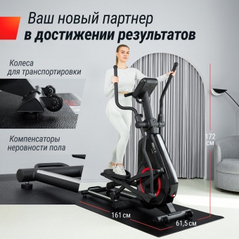 Эллиптический тренажер обеспечивает одновременную нагрузку на верхнюю и нижнюю части тела. Вы задействуете мышцы рук, ног и кора, что делает каждую тренировку максимально эффективной для снижения веса, укрепления мышц и улучшения сердечно-сосудистой системы. Тренажёр для дома имеет встроенную систему отслеживания пульса, которая располагается на поручнях, а также отображает данные о ходе тренировки - время, скорость, дистанцию, калории и пульс. Это поможет вам контролировать достижения и мотивировать себя на новые свершения!