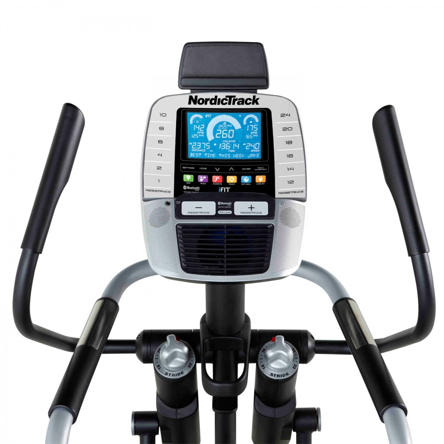 Торговая марка NordicTrack Максимальный вес пользователя (кг) 135 Назначение (класс) Профессиональное Гарантийный срок (мес) 24 Вес нетто (кг) 117 Длина, см 157 Длина шага (см) 56 Длина упаковки №1 (см) 130 Ширина упаковки №1 (см) 77 Высота упаковки №1 (см) 63 Вес брутто общий (кг) 125 Количество упаковок (шт) 1 Объём упаковок общий (м3) 0.63 Вес маховика (кг) 10 Расположение маховика Боковое Ширина (см) 81 Высота (см) 166 Кол-во уровней нагрузки 24 Система нагрузки Электромагнитная Складная конструкция Нет Возможность изменения длины шага Да Тип кардиодатчика Встроенный и беспроводной (в комплекте) Подставка для стакана/бутылки Да Компенсаторы неровности пола Да Транспортировочные ролики Да -