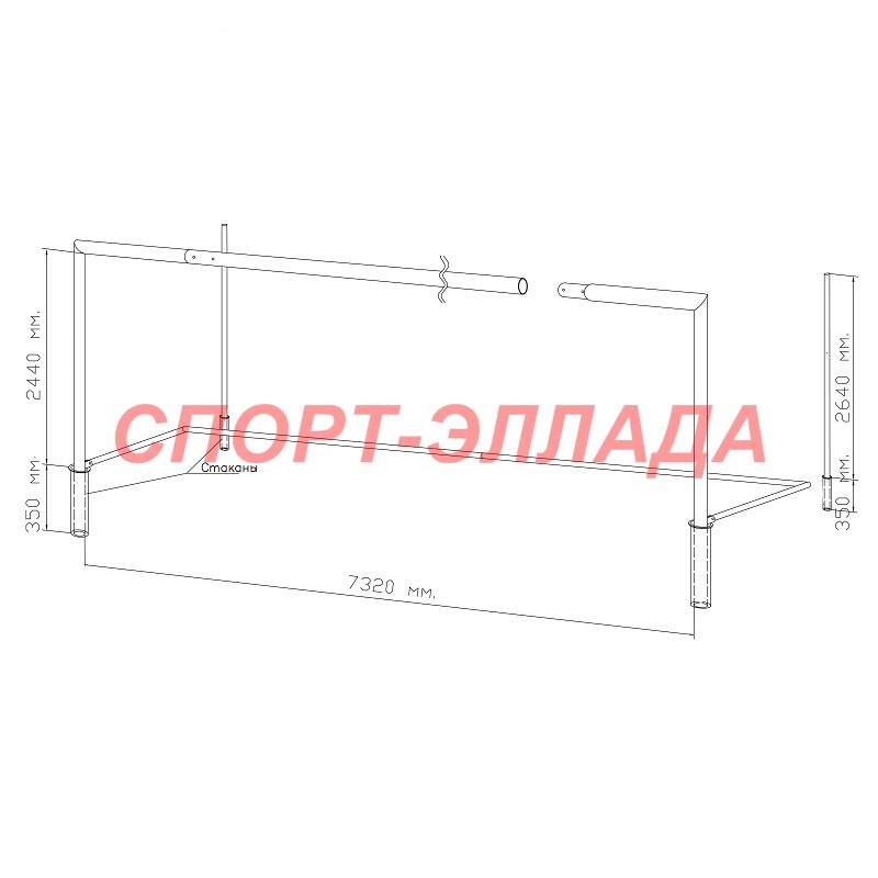 ворота футбольные алюминиевые стационарные h-732-2p 7,32х2,44 м