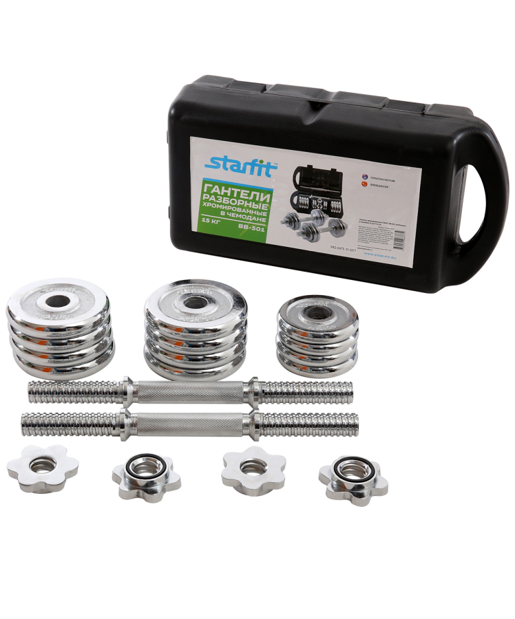 Гантели хромированные BB-501, разборные, в чемодане, 2 шт. по 7,5 кг