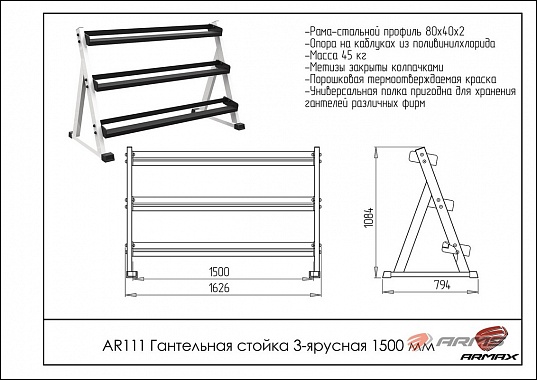 Гантельная стойка ARMS трехъярусная на 15 пар AR111 купить в Санкт-Петербурге