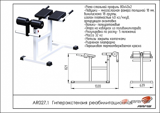Гиперэкстензия реабилитационная ARMS AR027.1 купить в Санкт-Петербурге