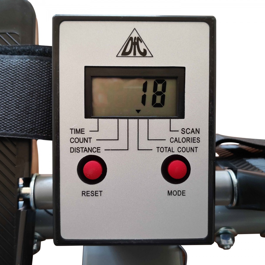 • Гребля является очень эффективным комплексом упражнений, в процессе выполнения одновременно тренируются все основные группы мышц как верхней, так и нижней частей тела, а также сердечно-сосудистая система. Гребной тренажер DFC R403B3 предназначен для домашнего использования. Система нагружения состоит из 2 гидравлических цилиндров, нагрузка не регулируется. Для удобства тренировки возможно изменить высоту крепления цилиндра к веслам (рычагам). Диапазон вращения рукояток гребного тренажера составляет 360°. Консоль с LCD-экраном компьютера отображает необходимую во время тренировки информацию: время, гребки, расстояние, скан, калории, общее количество гребков. Питание консоли от батарейки.
