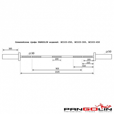Гриф олимпийский тренировочный D50, L2200 Pangolin BC103-450