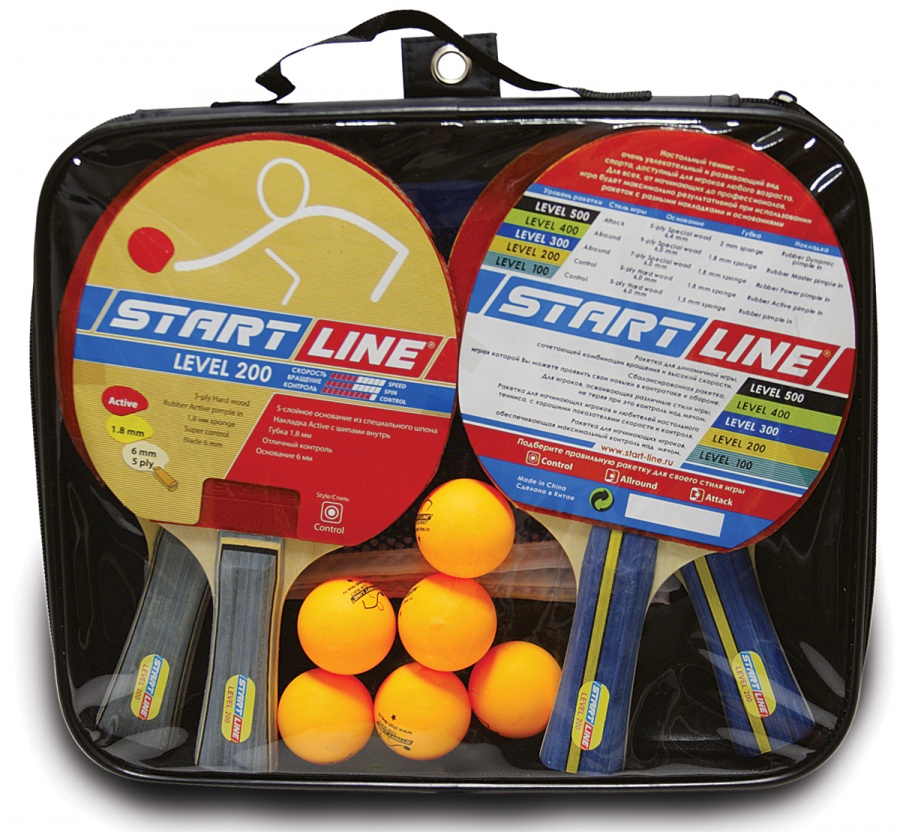 Набор для н/т Start Line (4 ракетки Level 200, 6 мячей Club Select, сумка)
