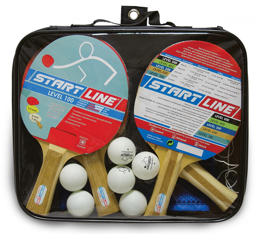 Набор для н/т Start Line (4 ракетки Level 100, 6 мячей Club Select, сетка, сумка)