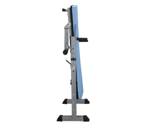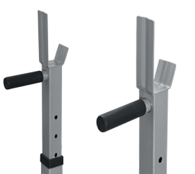 Складная скамья для жима штанги от груди и выполнения упражнений на брусьях. Усиленная стальная рама с профилем размером 50*50 мм. и толщиной 1.5 мм. выдерживает совокупную нагрузку до 120 кг. Стойки под штангу регулируются в 6-ти положениях, предусмотрены страховочные крюки.