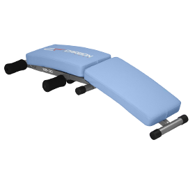 Изогнутая скамья для всесторонней проработки мышц пресса. За счет дугообразной формы мышцы живота и другие сопутствующие мышцы прокачиваются более эффективно. Имеет складную конструкцию, в собранном виде занимает минимум места. Валик для ног регулируется по высоте (9 положений). Профиль размером 3,5 х 3,5 см. и толщиной 1,5 мм. выдерживает пользователя весом до 100 кг.