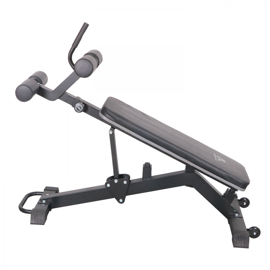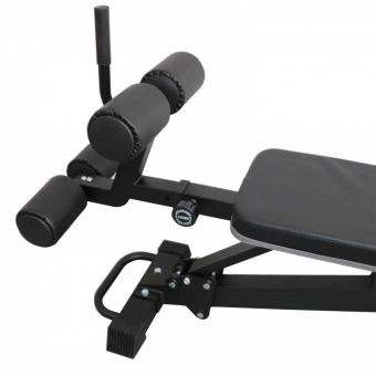 Скамья регулируется по углу наклона в широком диапазоне, до 24°, включая отрицательный. Всего 6 уровней регулировки.