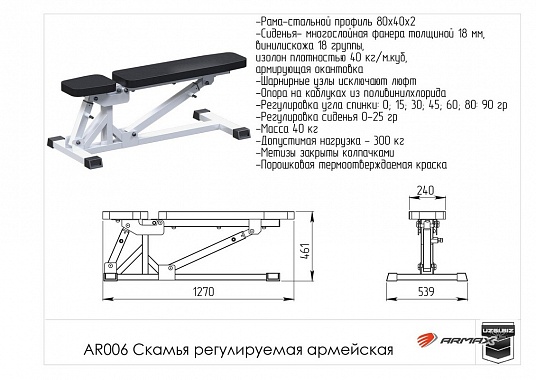 Скамья регулируемая (армейская) ARMS AR006
