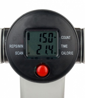 Показания компьютора: время тренировки, количество шагов за тренировку, ритм, суммарная дистанция, израсходованные калории.