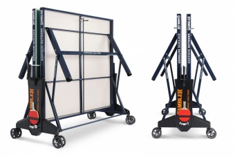 Вне зависимости от рельефа, на котором будет установлен стол, играть на нем будет комфортно. Это возможно благодаря системе регулировки боковых опор. 8 прорезиненных колес обеспечивают плавную маневренность и комфортную транспортировку стола.