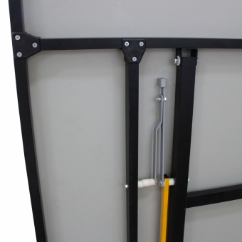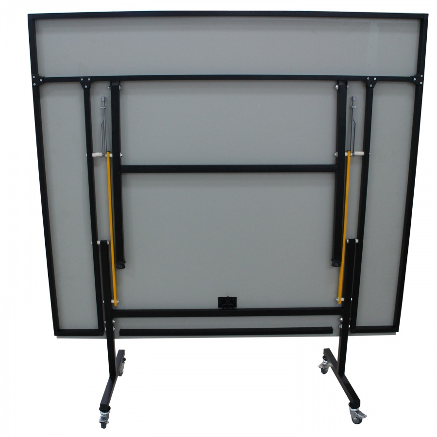 Каждая столешница на отдельной базе. Компактная система складывания. Стол имеет компенсаторы высоты. Наличие блокиратора в механизме складывания. Конструкция стола позволяет сложить половину и играть одному.