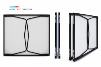 Hobby Evo Outdoor - любительский теннисный стол для использования на открытых площадках и в помещениях. Модель ультрасовременного дизайна. Ноги стола специальной формы, с характерным изгибом. Раскосы ярко-красного цвета с надежной фиксацией обеспечивают устойчивость конструкции в разложенном виде и во время игры. Размер теннисного стола соответствует международным стандартам ITTF.