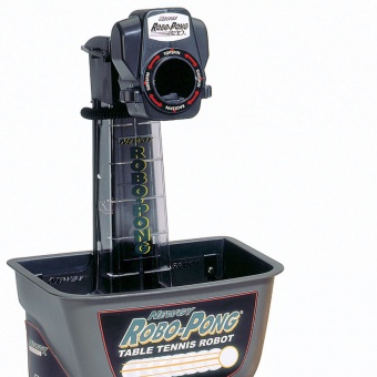 Настольный робот. Его скорострельность - от 13 до 63 мячей в минуту. Вы можете выставить любое вращение, необходимое для вашей тренировки. Скорость выброса мяча - от 16 до 113 км/ч, что дает возможность тренироваться не только начинающим, но и профессионалам, а наличие пульта дистанционного управления позволит быстро перестроить характеристики выброса мяча.