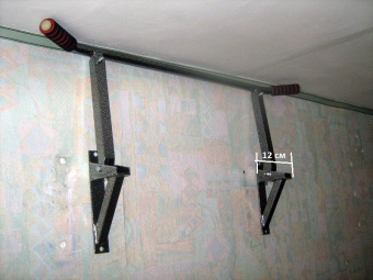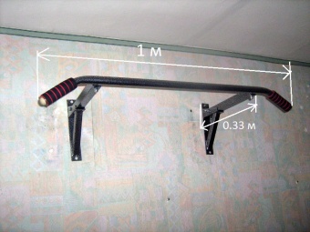 • Складная конструкция позволяет поднимать перекладину после занятий вместе с кронштейнами вверх. В сложенном виде кронштейны турника выступают от стены всего на 12 см! В рабочем состоянии расстояние от стены 0,33м, длина перекладины 1 м. Турник свободно выдерживает нагрузку в 200 кг.