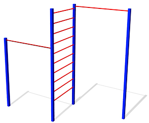 В конструкции "Вектора" предусмотрено два турника разной высоты, на которых комфортно выполнять подтягивания детям разного возраста и взрослым, и одна шведская стенка. Сварные части изделия перед отправкой потребителю проверяются на прочность, дабы исключить травмирование занимающихся.