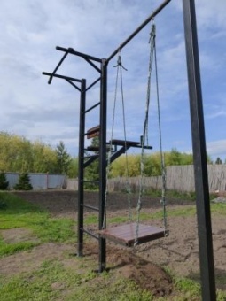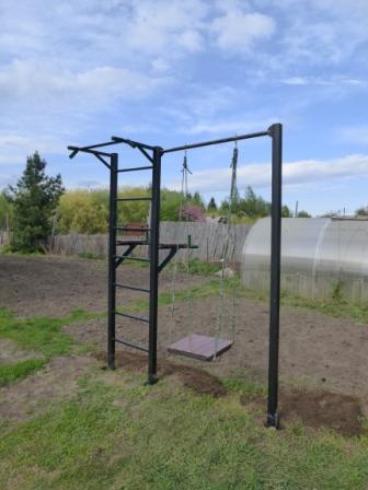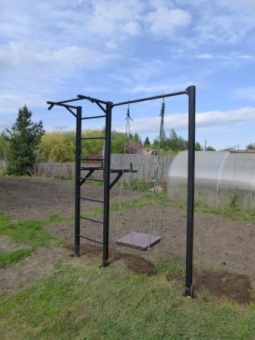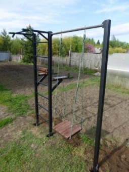 • ТУРНИК-брусья-пресс со стойкой под качель, изготавливается из профильной  трубы 60х40мм и 60х60мм. Разборная конструкция, рекомендуемая нагрузка на турник не более 300 кг, на брусья не более 200 кг. (качель в комплектацию не входит)