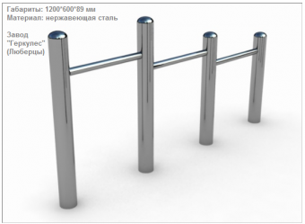 Конструкция имеет радиальные загибы (округление), выполненные для увеличения прочности конструкции. В комплект тренажера входит элемент закладного фундамента.