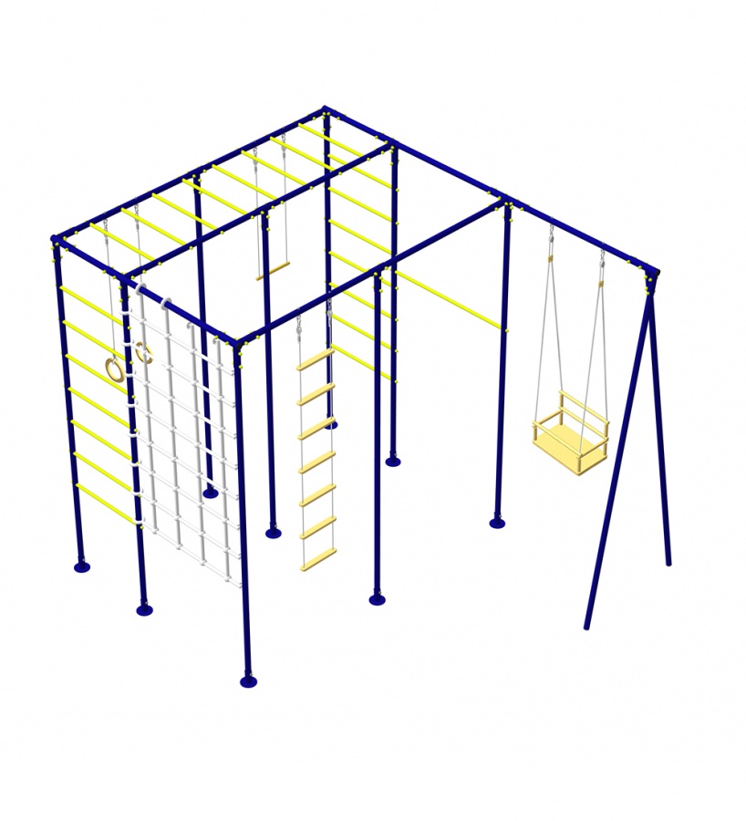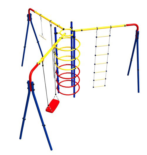 дск "пионер-дачный" тк-2 (качели на подш., баскет. щит, канат, кольца, трапеция, верев. лестница)