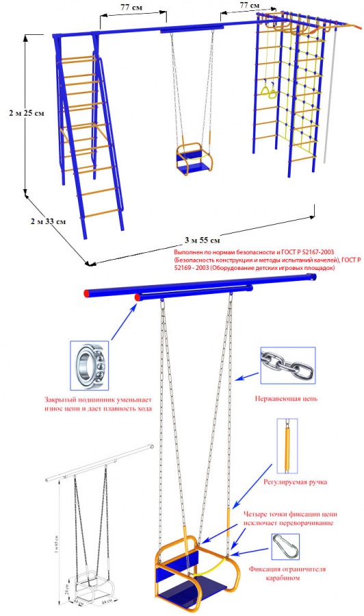 уличный дск вереск "непоседа-дачник №9" с рукоходом, 2 сетками и качелями на цепях