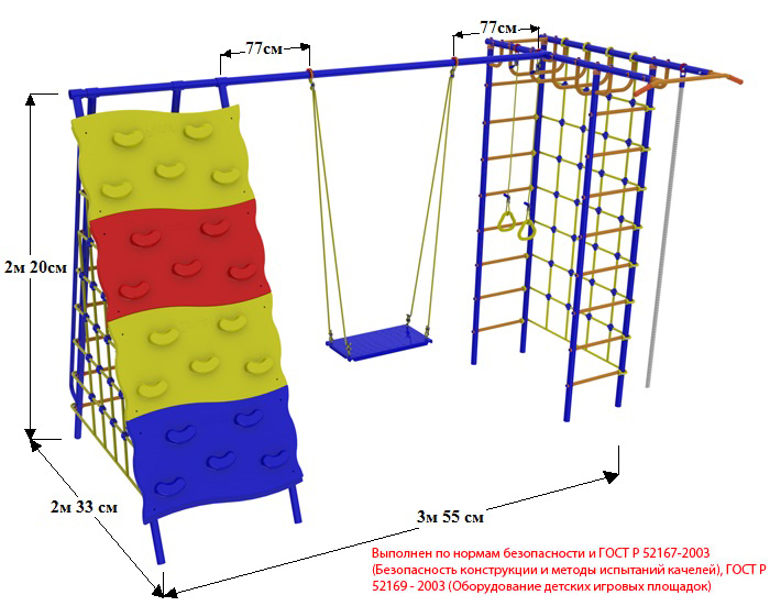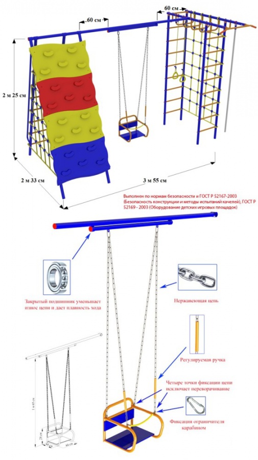 уличный дск вереск "непоседа-дачник №7" с рукоходом, скалодромом и качелями на подшипниках