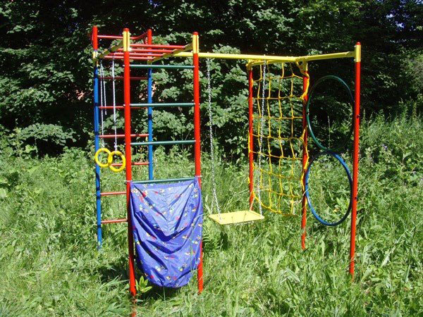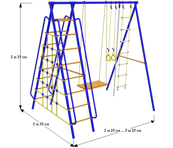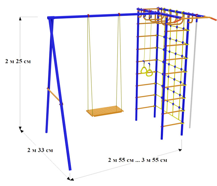 дск "пионер-дачный мини" тк (качели тк, баскет. щит, верев. лестница, канат, кольца, трапеция)