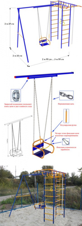 уличный дск вереск "непоседа-дачник №2" с рукоходом и качелями на подшипниках