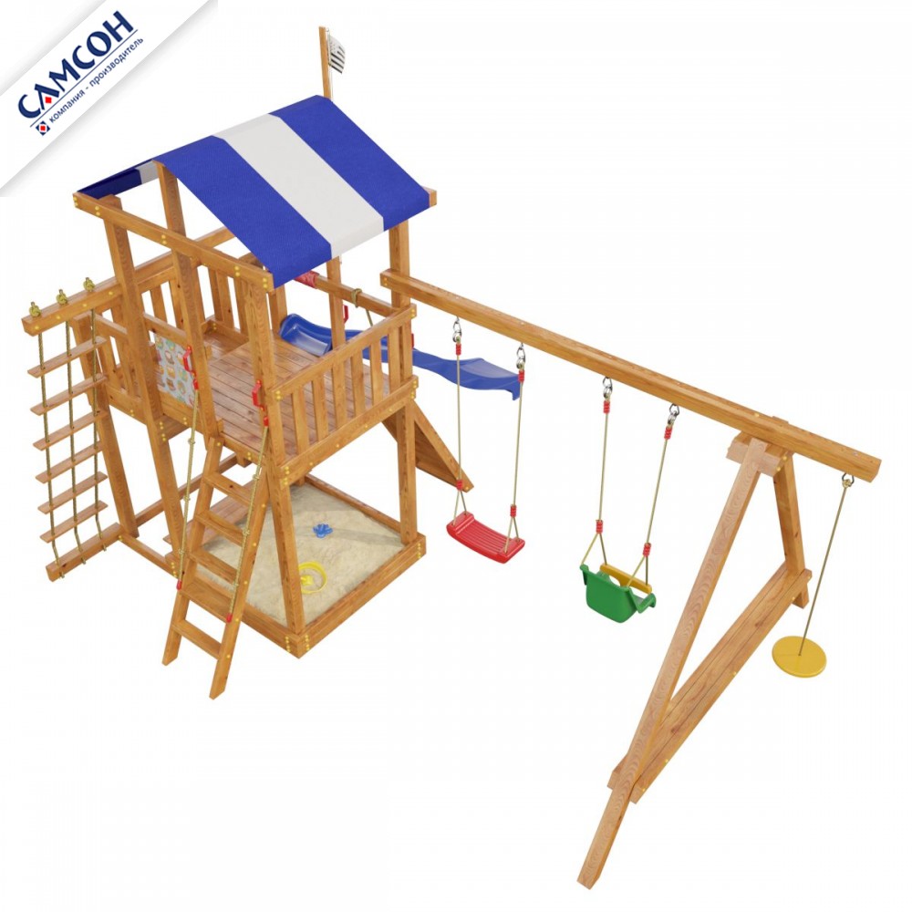 Товар поставляется в разобранном виде. В комплект для самостоятельной сборки входит подробная инструкция по сборке товара. Установка детской игровой площадки проводится на ровной поверхности, свободной от насаждений. Размер площадки не менее 6,6м х 6,2м. Рекомендуем зафиксировать конструкцию используя анкера любой формы.