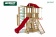 Модули:: башня высокая с лестницей, крыша из ткани, 2 горки пластиковые 1,5 метра , лестница веревочная, кольца канатные, скалодром, горка сетчатая, модуль с качелями