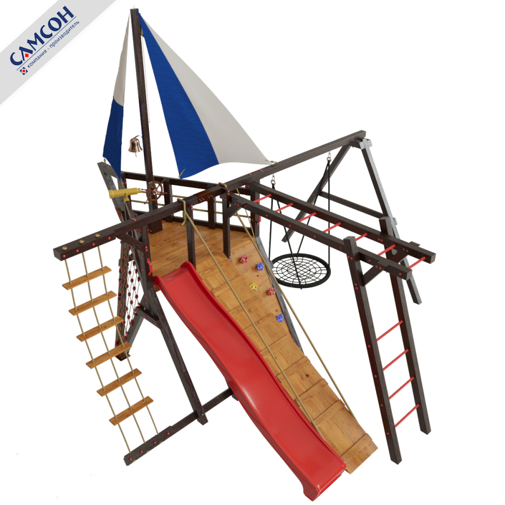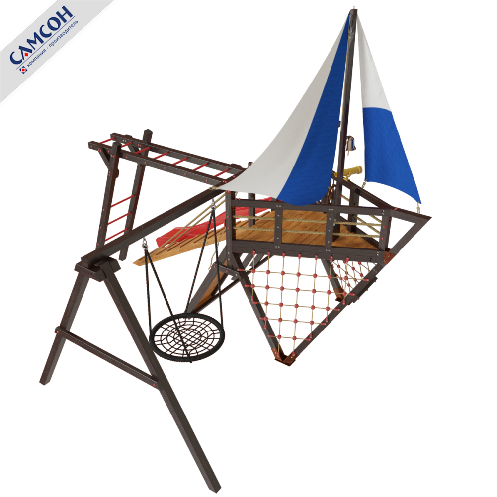 Детская игровая деревянная площадка-корабль «Фрегат» для дач и частных домовладений предназначена для детей от 4 до 9 лет, создает условия, обеспечивающие физическое развитие ребенка, развивающие координацию движений, преодоление страха высоты, ловкость и смелость, чувство коллективизма в массовых играх.